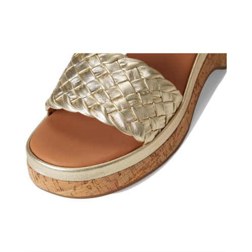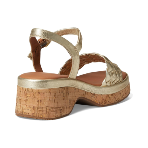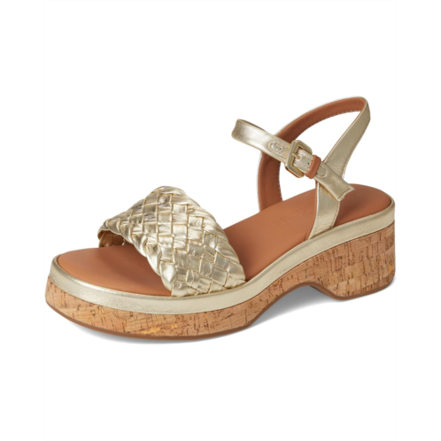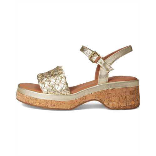 The Gentle Souls by Kenneth Cole Dorris is a platform sandal featuring an innovative PORON multi-layered cushioning system. With an adjustable buckle closure, the footwear boasts leather upper construction and a sturdy block heel.