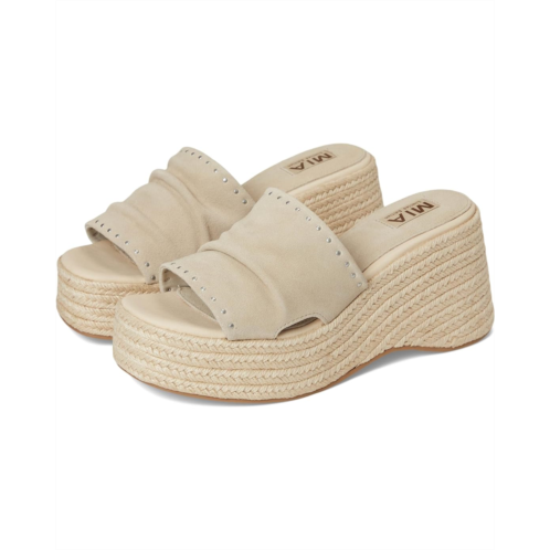 Love your uber-stylish look yet feel the comfort with every step wearing MIA MLE-Palmira Sandals. The slip-on style sandals are designed with a suede upper, faux leather lining, and a faux leather insole. The studded details on the upper and the wedge heel detail raise the glam quotient.