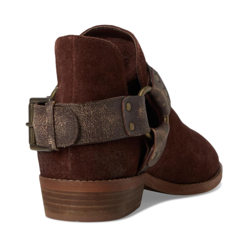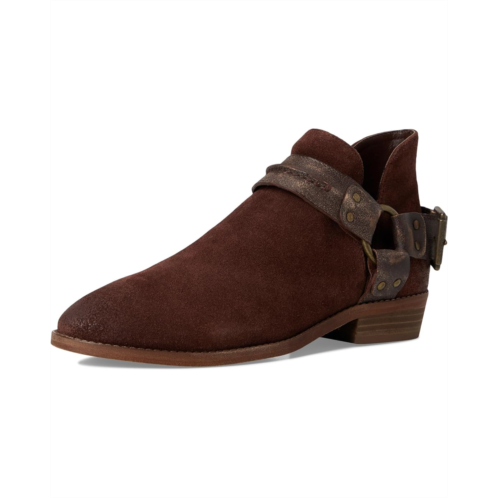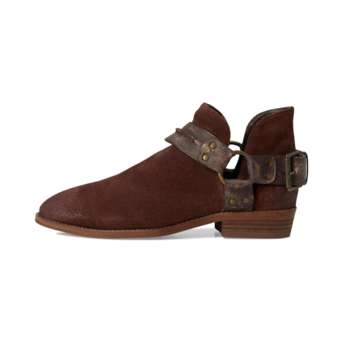 - Rugged details adorn these stunning Free People Belle Harness Boots, featuring perfectly distressed suede uppers, a crackle leather harness with a buckle, and block heels for an elevated, effortlessly edgy style. These heeled boots are made of a rubber insole and leather lining. Their pull-on design ensures easy on and off. Get ready for a bold look with these ankle boots.