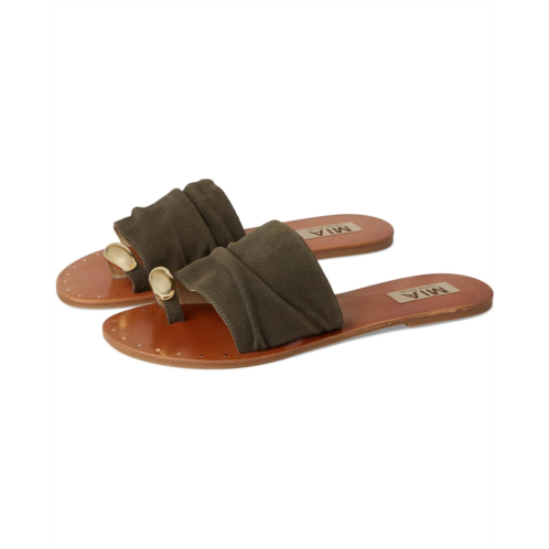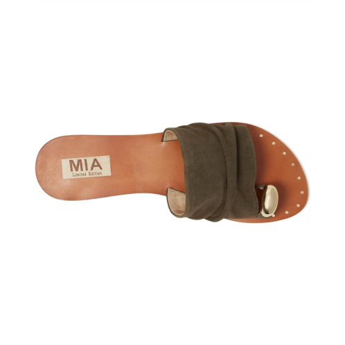 Liven up your laidback look in the MIA MLE-Tiffani sandal. Featuring a genuine suede strap, flexible faux leather lining, nail head details, and a toe ring accent for a touch of glam.