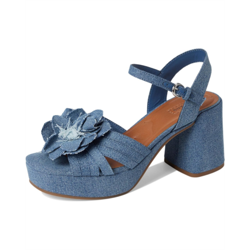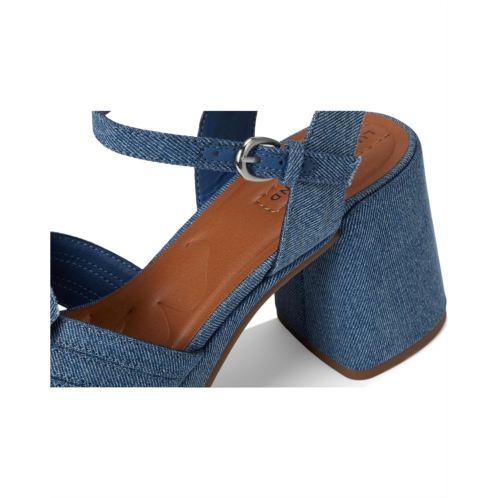 Introducing the Lucky Brand Marrika Platform High Heel Sandals! These chic sandals feature a denim upper and synthetic lining for a stylish look and comfortable feel. With a cushioned insole, ankle-strap design, wrapped platform, and chunky block heel, these sandals are perfect for all-day wear.