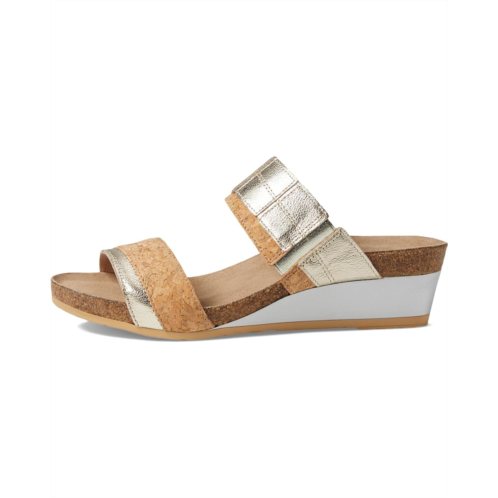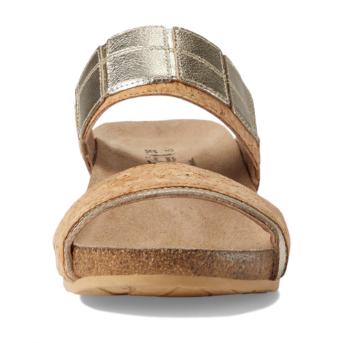- Shock absorbent cork-cushioned foot footbed is wrapped in soft suede.