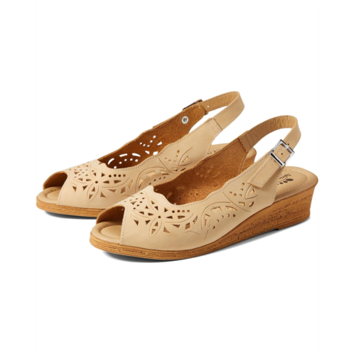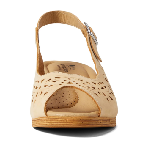 - Indulge in the lasting comfort and style with the Spring Step Orella slingback wedge. The wedge sandal has a premium leather upper with an intricate laser-cut design throughout for added style and feminine appeal.