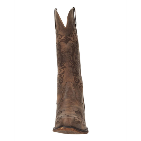 - Western boots made of vintage faux leather uppers.