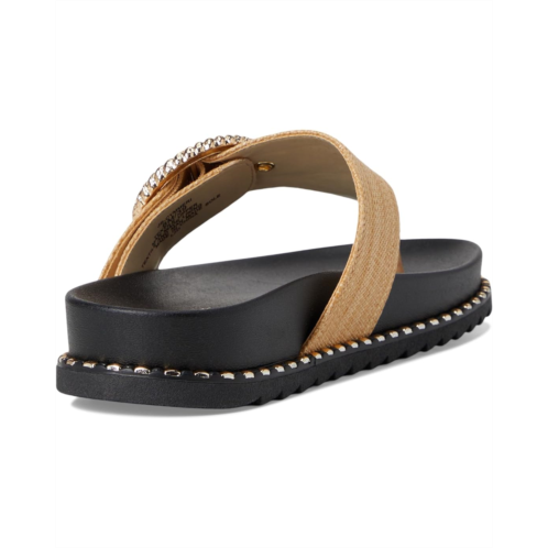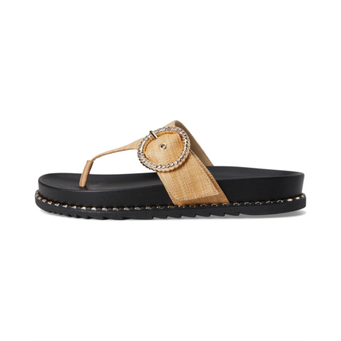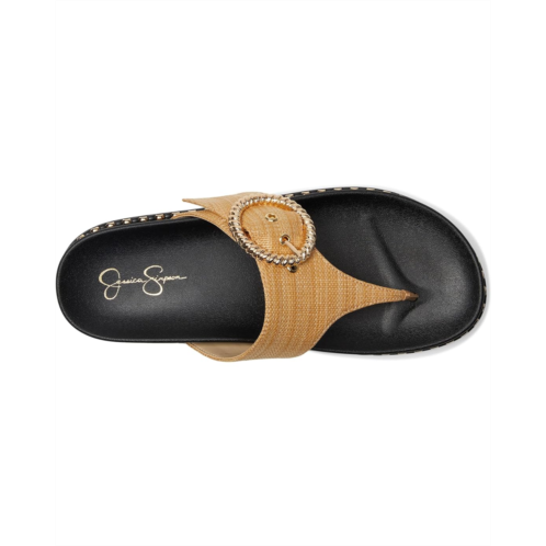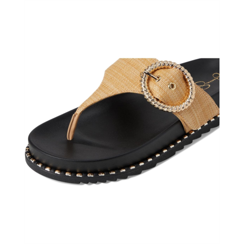 The Cymmeri Buckle Sandals from Jessica Simpson featured a raffia thong style upper embellished with a textured buckle. Crafted from a jute upper, polyester lining, and insole. The sturdy outsole with subtle studded accents offers durability and traction. This sandal has style for days.