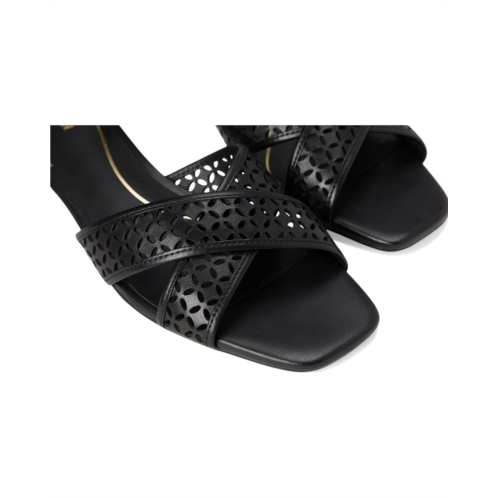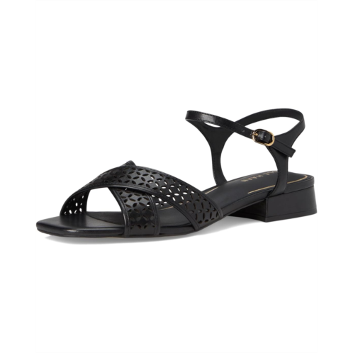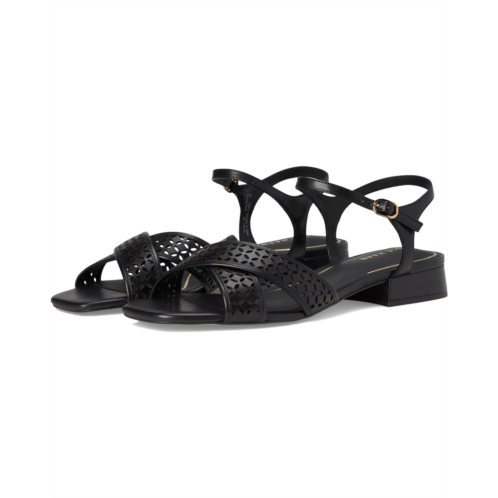 Vintage meets visionary: Cole Haan Patie Sandals. Crafted with a leather upper and soft square toe, these cross-band sandals feature an ankle strap with a functional buckle and a hidden elastic under the buckle for a snug yet flexible fit. The architectural-inspired laser cut perforated detail adds a touch of sophistication to every step. Built with a 3D Lux comfort sock and leather lining, these sandals offer unrivaled support. The EVA insole and buffed synthetic outsole with recycled rubber content and woven laser design ensure lasting traction and comfort, making them perfect for all-day wear.