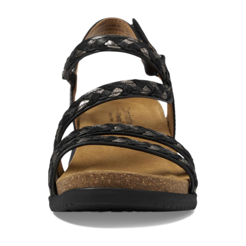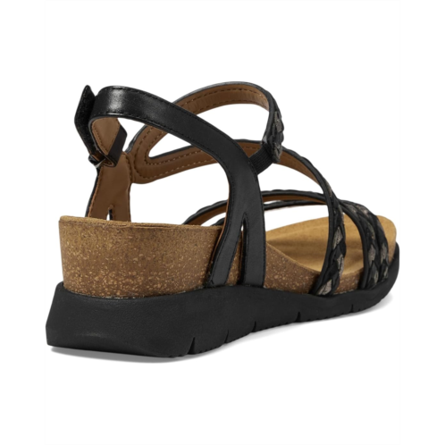 Give your feet the soft touch of comfort while you are going places wearing Comfortiva Silvia Sandals. The sandals are crafted with an asymmetrical woven leather upper, polyester lining, and a cork padded footbed. The adjustable hook-and-loop closure offers a secured fit and the wedge heel elevates the look.