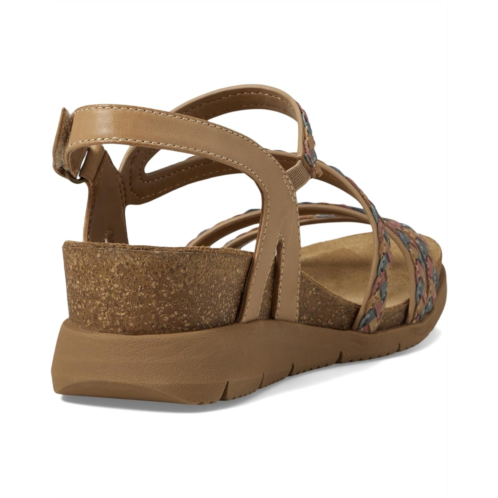 Give your feet the soft touch of comfort while you are going places wearing Comfortiva Silvia Sandals. The sandals are crafted with an asymmetrical woven leather upper, polyester lining, and a cork padded footbed. The adjustable hook-and-loop closure offers a secured fit and the wedge heel elevates the look.