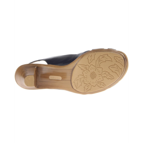 - Upper available in various materials and features a sling-back strap with an adjustable buckle closure.