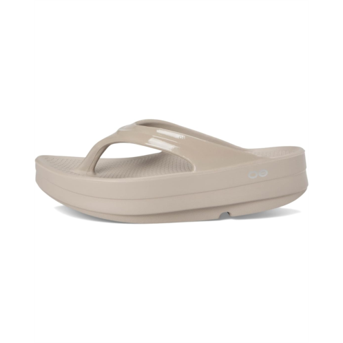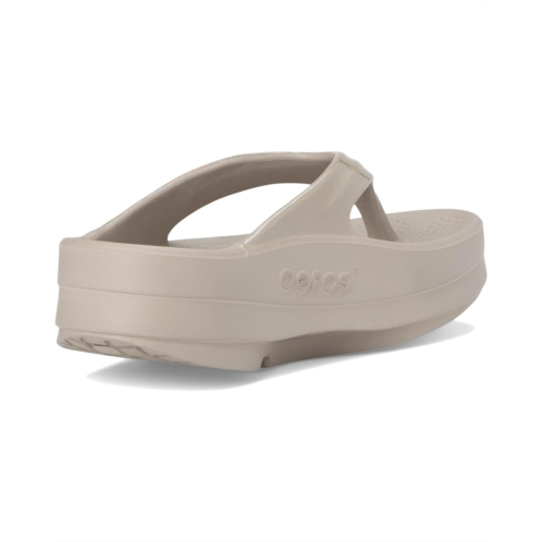 - The OOmega OOlala is a versatile, modern take on the traditional OOlala active recovery sandal. Still featuring the same proprietary OOfoamtechnology and patented footbed design - the addition of the MEGA midsole gives you an extra 15mm of impact-absorbing OOfoam technology. The OOmega is a step forward in fashion and another step into active recovery. OOmega, a women′s platform sandal for trend-setting recovery, day or night. Unique in footwear and only from OOFOS.