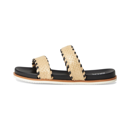 The MIA Vella is your go-to slide for sun-drenched strolls and poolside polish. Designed with a trendy double strap silhouette, this slip-on beauty features a luxe faux leather upper, lining, and insole that feel just as good as they look. The open toe keeps things breezy, while raffia accents bring boho charm to every step. Whether you're heading to a weekend brunch or jetting off to a beach escape, this sandal is made to match your mood. With a cushioned MIA signature footbed and lightweight PU outsole, comfort is built into every outing. And thanks to the easy-on, easy-off style, you'll spend less time fussing and more time glowing.