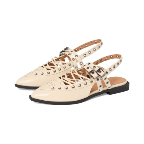 These GALANTI ballet flats feature a pointed-toe design and a slingback strap, creating a sleek and stylish look. The moto-inspired details add a touch of edginess to this classic silhouette. Perfect for any occasion, these flats provide comfort and fashion all in one.