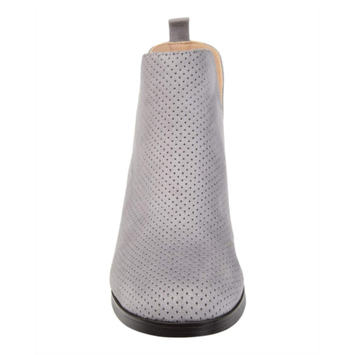 - Finish off your style with the low-profile look of the Journee Collection Mylee Bootie with a faux leather upper, perforated detail, and pull-on construction with an ankle pull-tab.