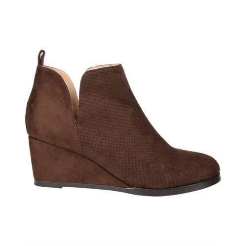 - Finish off your style with the low-profile look of the Journee Collection Mylee Bootie with a faux leather upper, perforated detail, and pull-on construction with an ankle pull-tab.