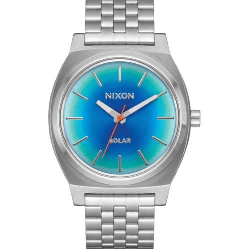 - Add a hint of elegance to your look donning the classy Nixon Time Teller Solar watch. It has a stainless steel construction. It also features a bracelet style with a fold-over push-button deployment closure.