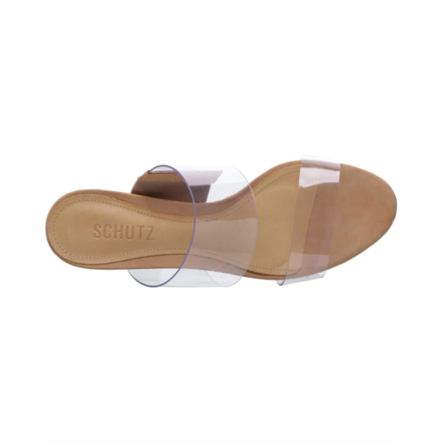 - This season is all about see-through styles and the Schutz Victorie heeled sandal ticks all the style boxes. This minimal mule sandal showcases clear chunky straps and a block heel that's easy to walk in. Slip this day to night shoe on with everything from cropped jeans to a midi skirt and jacket. The options are endless.
