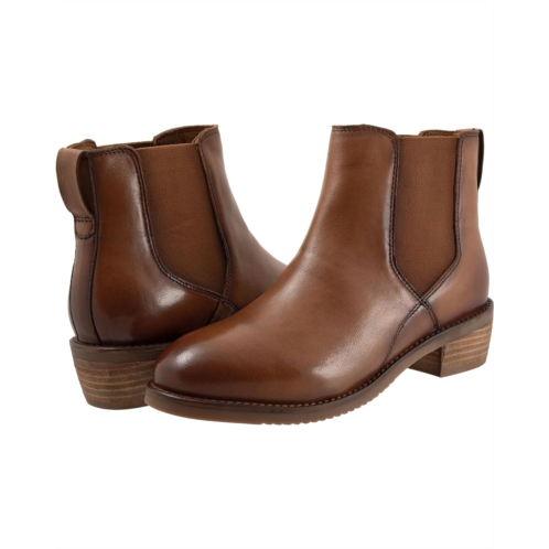 - Classic Chelsea boot with elastic goring and stacked heel.