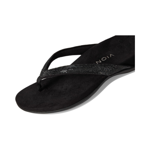 - This shimmery slip-on style VIONIC Dillon Shine flat sandals are sure to become your new favorite for any occasion. These toe post sandals are crafted from soft fabric upper and lining with shiny straps.