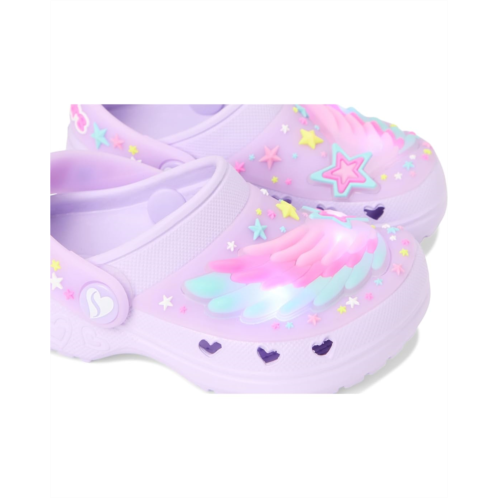 Step up the fun in awesome comfort with the SKECHERS KIDS Sweetheart 308367N shoes. These lighted wing-themed clogs are made of a sculpted Foamies EVA upper with a lighted wing vamp and a convertible heel strap. They are made of a contoured cushioned footbed, EVA insole, and synthetic rubber lining. Stylish and comfortable, these colorful clogs will be your kid's favorite.