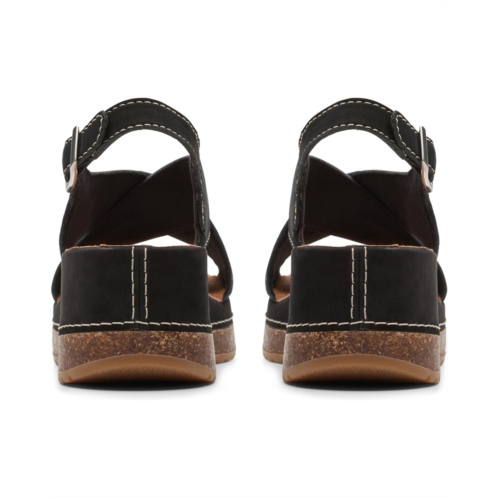 - Move out to explore the world wearing Clarks Kassanda Step sandals. An open toe with crossing-over wide strappy vamp and adjustable ankle strap with buckle closure ensures a supportive fit to the feet. It has leather upper, polyester lining, and rubber insole.