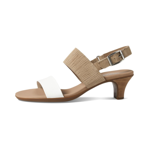 - Let your feet feel comfortable by taking every step in the Munro Livia. The slip-on sandals have a double band with a hook-and-loop adjustable backstrap under the buckle, an open almond-toe design, and kitten heels. The sandals have a leawood insert at the heel for a relevant timeless texture. The mid-heel height sandals have leather upper, faux suede lining, padded silhouette, and leather insole for added comfort.