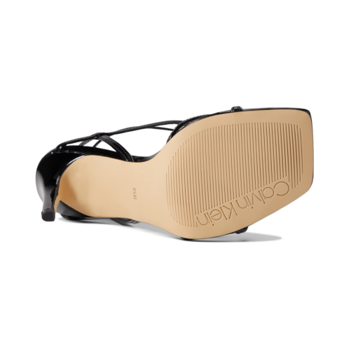 - The Calvin Klein Tegin has crisscrossing straps at the instep and vamp that add modern dimension to a square-toe sandal lifted by a sky-high stiletto heel.