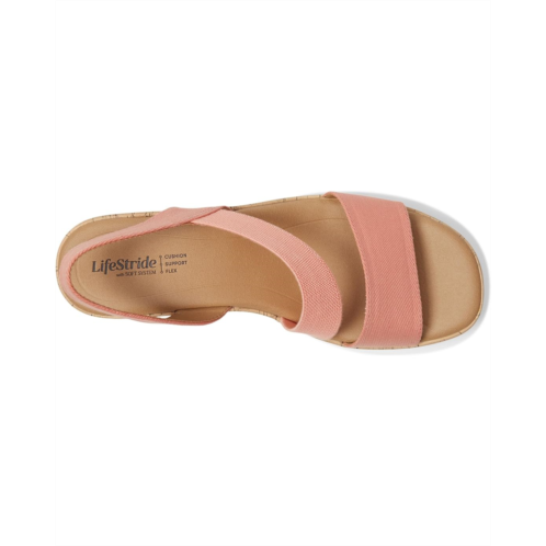 Enjoy unmatchable comfort while keeping the style game on wearing LifeStride Odette Sandals. The slip-on style, open-toe sandals are designed with a strapy polyester upper, partially recycled polyurethane lining, and a foam insole with Trusted Soft System comfort technology for good cushioning, support, & flexibility.