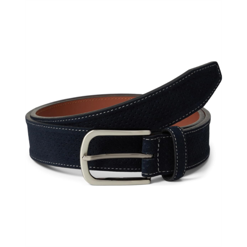 - Perforated suede detail adds interest to this handsome Johnston & Murphy belt.