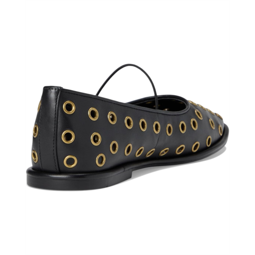 Featuring metal grommets allover, the COACH Emilia Mary Jane with Grommets are perfect to pair with casual styles and formal outfits. They are made of a leather footbed and faux leather lining, making them both comfortable and durable. The leather upper features a slip-on styling for easy wear. These leather flats offer a stylish appeal without compromising comfort.