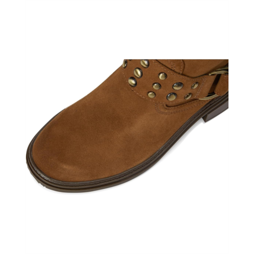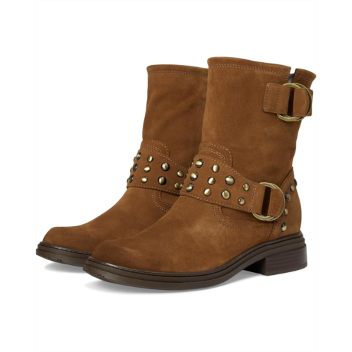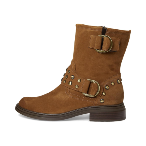 - Elegant edge. The Naturalizer Optimus moto boot with a studded leather strap delivers sleek street style. This mid-calf boot blends rugged Western charm with modern comfort, featuring bold buckles and classic stitching across a leather upper with a rounded toe. A zippered side closure ensures easy wear, while Contour+ Comfort technology delivers a premium fit with responsive cushioning for all-day support.