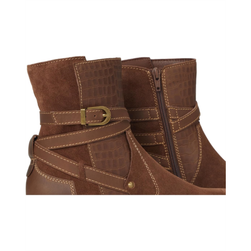 - Introducing the David Tate Storm boot, an exquisite blend of style and functionality. Crafted from luxuriously vintage printed leather and soft suede upper, this ankle boot showcases a chic wrap-around strap adorned with a buckle that adds a touch of sophistication. The thoughtful design includes a convenient zippered side closure, making it effortless to slip on and off. Standing on a sturdy block heel complemented by a robust rubber outsole, the Storm boot ensures comfort and provides ample support for all-day wear. Whether you're braving chilly days or aiming for an elegant, dressy appearance, this boot is your go-to choice. Its stunning upper is crafted to turn heads, making it a standout addition to any wardrobe.