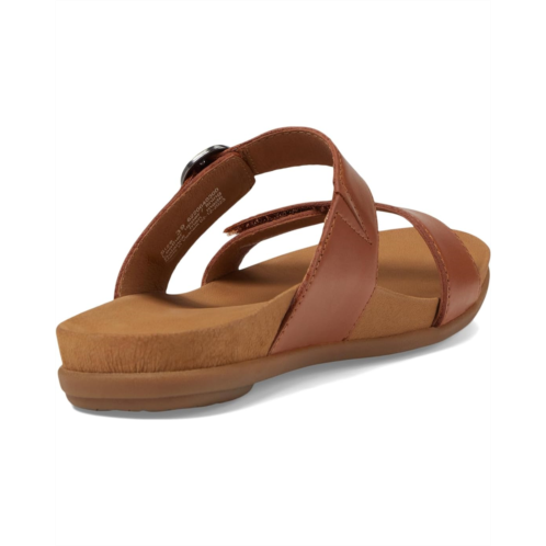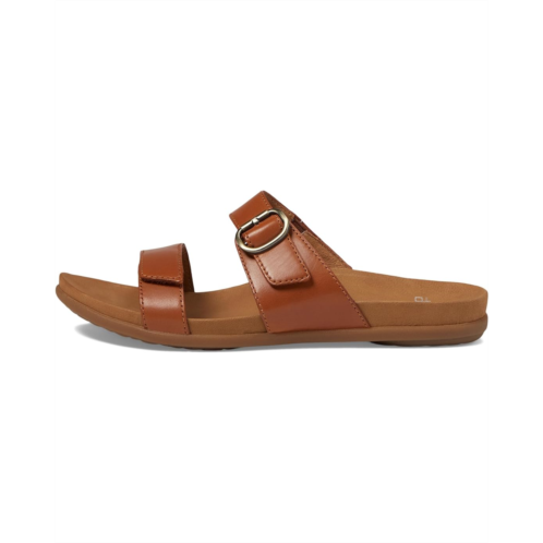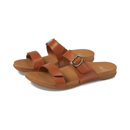 - Walk with comfort and style wearing the Dansko Justine sandals. The leather upper of these slides features a two-strap design with an adjustable buckle and hook-and-loop closure for a secure fit. These slide sandals are crafted with a contoured dual-density EVA footbed and chrome-free leather lining. Perfect to pair with casual dresses and trousers, these leather flats work for different occasions.