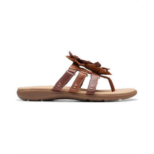 Crafted with a leather upper with cut-out flower detailing, the Clarks Elizabelle Mae sandals offer a chic look. Offering superior comfort and style, the padded rubber footbed and mesh lining take your comfort to the next level. Easy to slip on and off, these toe-post style sandals feature a hook-and-loop strap closure that offers a custom fit. Flaunt your great style by wearing these stylish sandals.