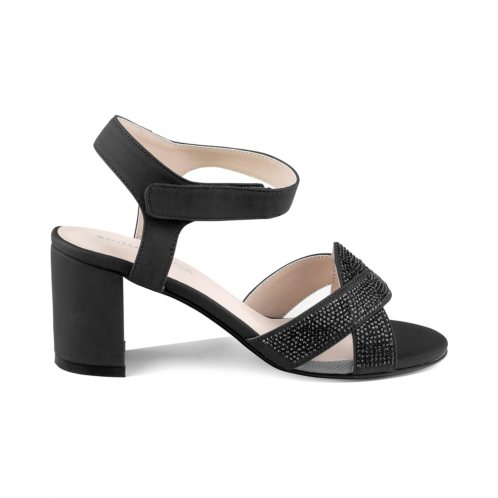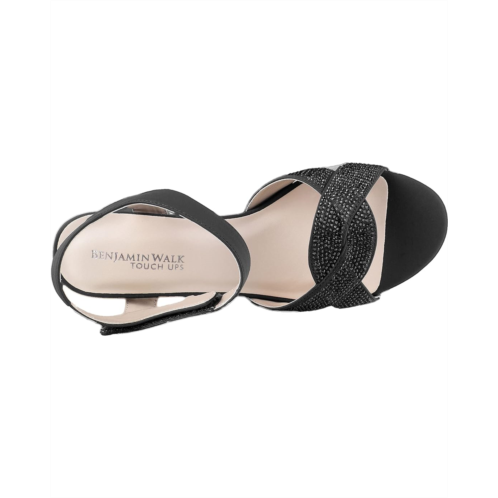 - Crisscross straps on the vamp with rhinestone embellishments.
