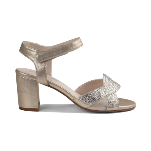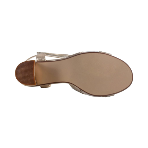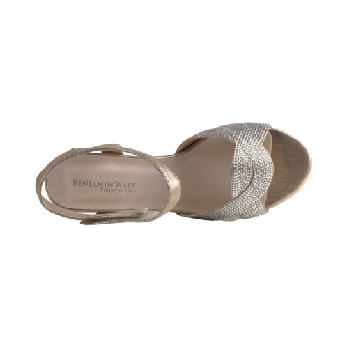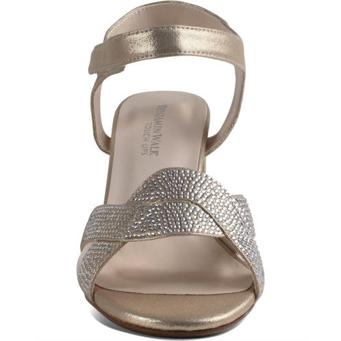 • Crisscross straps on the vamp with rhinestone embellishments.