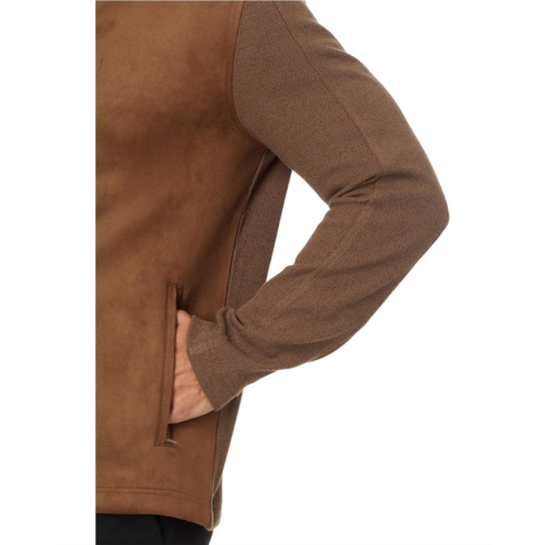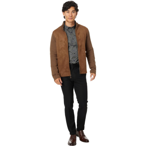 - The Johnston & Murphy Suede Full Zip is a subtly shaded cotton melange knit jacket with stretch faux-suede front panels. It features a stand collar with zippered front closure, long sleeves, and side hand pockets.