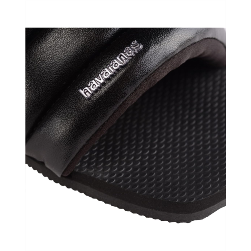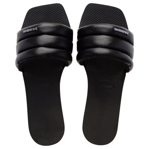 - A pair of fashionable footwear, the Havaianas You Milan Flip Flop Sandals come with a square toe design and a short stacked heel for added comfort. This pair comes with a puffy material and shine which helps complete your perfect runway look.