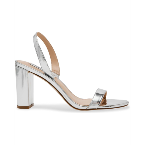 Two slender straps secure the Steve Madden Emilie to its block heel for a minimalist take on the classic strappy high-heel sandal. With an easy pull-on style, the footwear exudes a modern open toe silhouette and slingback strap closure.