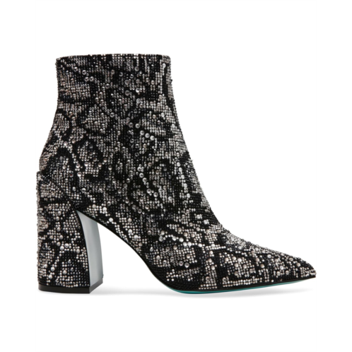 Add some flair to your outfits wearing the Blue by Betsey Johnson Kris boots that that everything up a notch. These sparkly booties showcase reliable and cozy block heels and a synthetic upper that is fully decked out with rhinestone embellishments. The rubber insole and synthetic rubber lining make them comfortable for all-day wear. These stylish boots come with a zippered side closure for easy on and off. Prepare to shine and grab everyone's attention wearing these ankle boots.