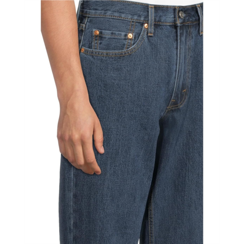 - Comfort and style come easy with the Levi's Mens 550 Relaxed Fit jeans. It's cut with a relaxed fit through the hip and thigh, and tapers slightly below the knee.
