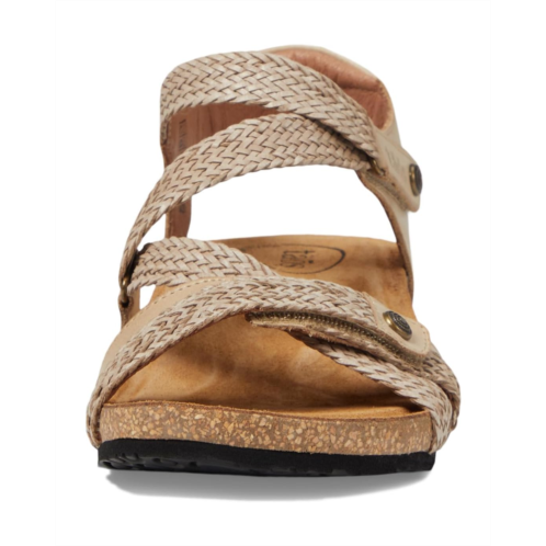 - The strappy Taos Footwear Trulie open-toe leather sandal offers comfort and style.