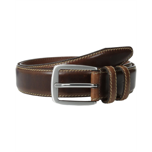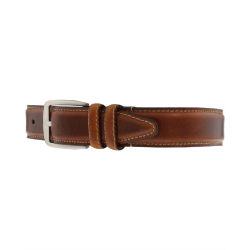 - Complement your casual wardrobe with the Allen-Edmond Yukon belt. This versatile style is made of premium waxy leather with contrast stitching, and completed with a silver-tone buckle.