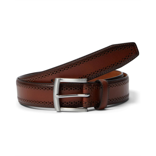 - Add a classic touch to your outfit by accessorizing with the Johnston & Murphy Perfed Edge Belt. The standard belt has a perforated edge with a polished nickel buckle for a secure fit. The elegant two-tone silhouette of the belt elevates your everyday look effortlessly.
