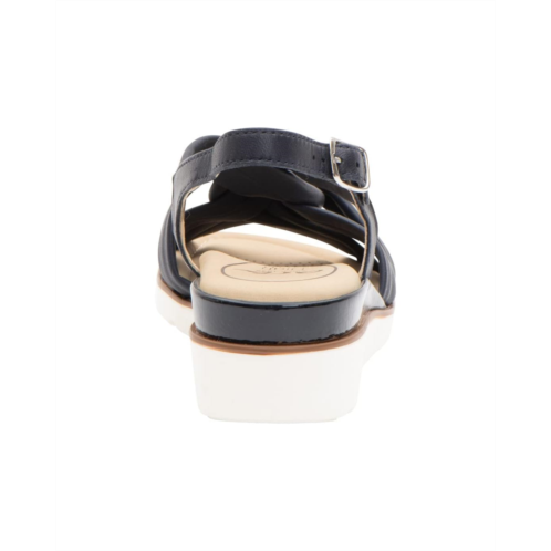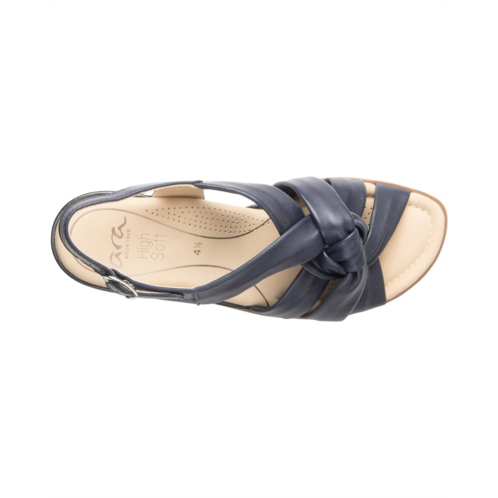 Turn your look into something inspirational with the Lucilla by ara low wedge sandal. Lovely knot detail for added appeal. Easy slip on with an adjustable buckle detail for a custom fit. This style features HighSoft technology. With HighSoft technology, ara has married the feeling of your most comfortable athletic shoes with its pumps, flats and other categories of footwear. Super soft uppers, a highly flexible outsole, a supple and padded insole and a special foam insert hidden under the ball of the foot combine to create an indescribably comfortable walking experience. H fit accomodates medium to wide widths.