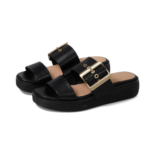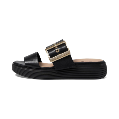 Embrace easy-breezy elegance with lightweight Cole Haan Originalgrand Platform Slides. These flats feature wide double straps crafted from leather uppers with buckle hardware detail. Enhanced underfoot cushioning system with signature fluting detail on a sculpted platform wedge provides all day comfort and stability. Patented FlowerFoam EVA outsole, with rubber pods for added traction and durability.