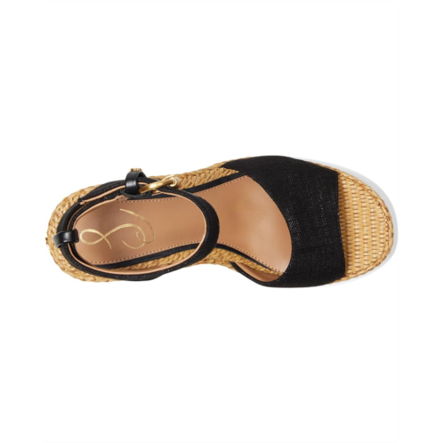 - Unleash your inner fashionista wearing the Sam Edelman Immie. It is crafted from fabric upper, synthetic lining, and polyurethane footbed. This pair of sandals features block heels, ankle strap bucked closure, round toe design, wide strap on the vamp, and brand detailing on the footbed.