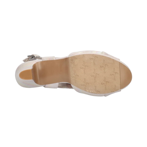 Adjustable slingback buckle closure.