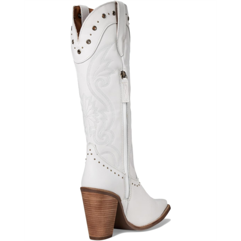 - Rock it your way styling Dingo Rock N' Rebel. Crafted with a premium leather upper, it boasts puffed stitching, bold studs, and a sleek knee-high silhouette that screams confidence. The snip toe and block heel deliver a perfect mix of edge and elegance, while the foam insole ensures cushioned comfort that lasts from day to night. A smooth polyester lining and rubber outsole add durability and ease, complemented by a convenient zippered closure for effortless wear.