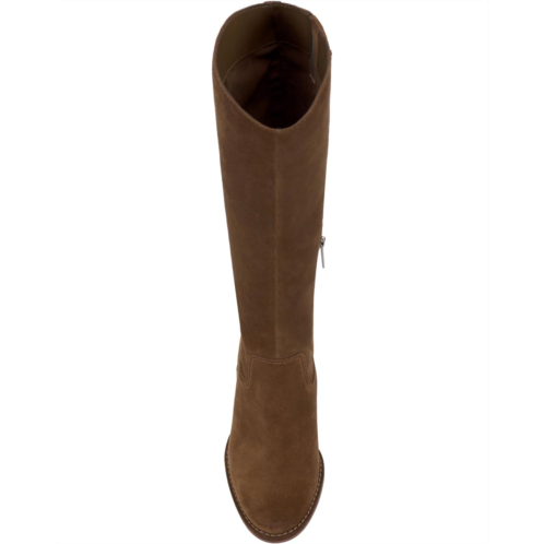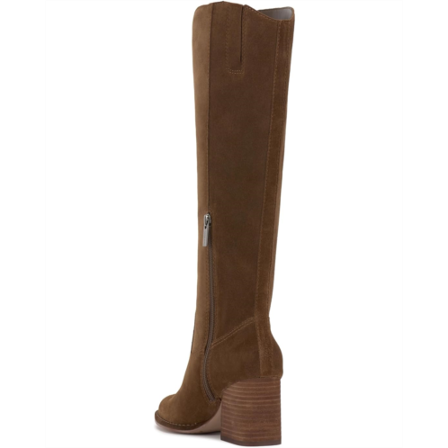 - The knee-high Vince Camuto Leila tall shaft boot has a modern vintage vibe. With soft round toe and a stacked block heel, this sleek boot has zippered side closure and elastic goring on the shaft for improved fit. The footwear is fabric lined and finished on the exterior with a leather-covered welt and rubber outsole.