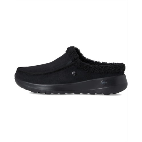 - Lounge in plush comfort and style wearing the SKECHERS Performance On-the-go Joy Suede Moc Toe Slippers. These casual mules feature a suede upper with faux fur lining for cozy comfort and 3M Scotchgard protection that resists water stains. Their Skechers Air-Cooled Goga Mat insole and lightweight 5GEN technology midsole cushioning provide all-day comfort.